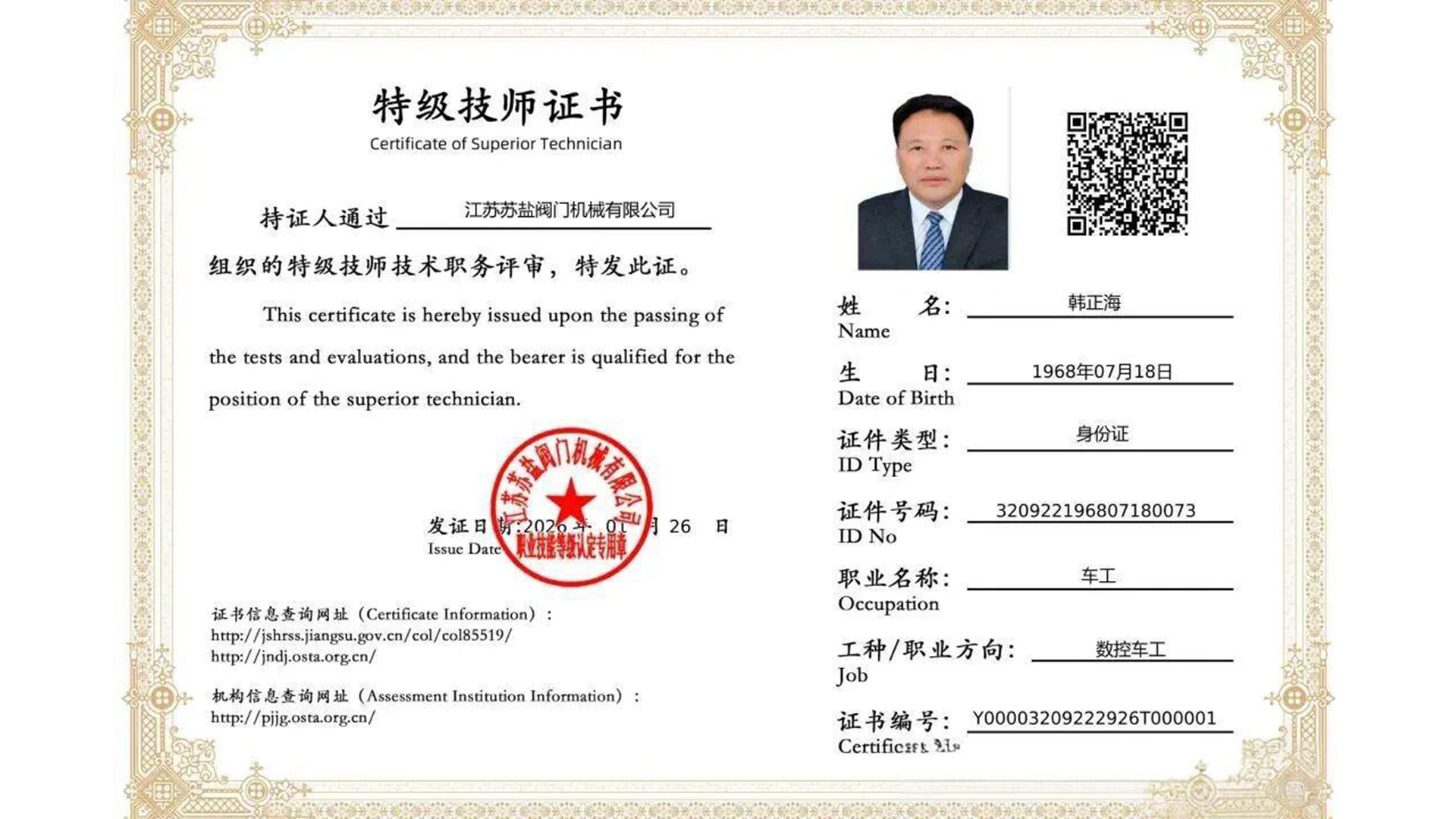 近日,在江苏省持续深化“放管服”改革、下放技能人才评价权限的政策背景下,韩正海董事长成功获评“江苏省特级技师”。这一荣誉不仅标志着其个人职业生涯的重要里程碑,也成为企业技能人才自主评价机制落地见效的典型案例,具有鲜明的时代意义与示范价值。