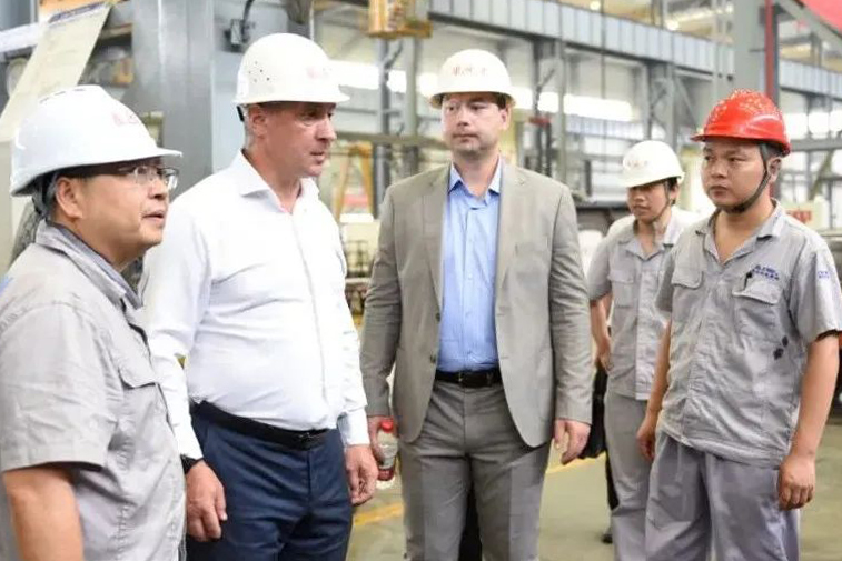 在车间现场,科罗马连科·谢尔盖一行在彭忠董事长陪同下参观了公司车间现场,详细了解了公司业务范围、技术研发水平、生产制造能力等。