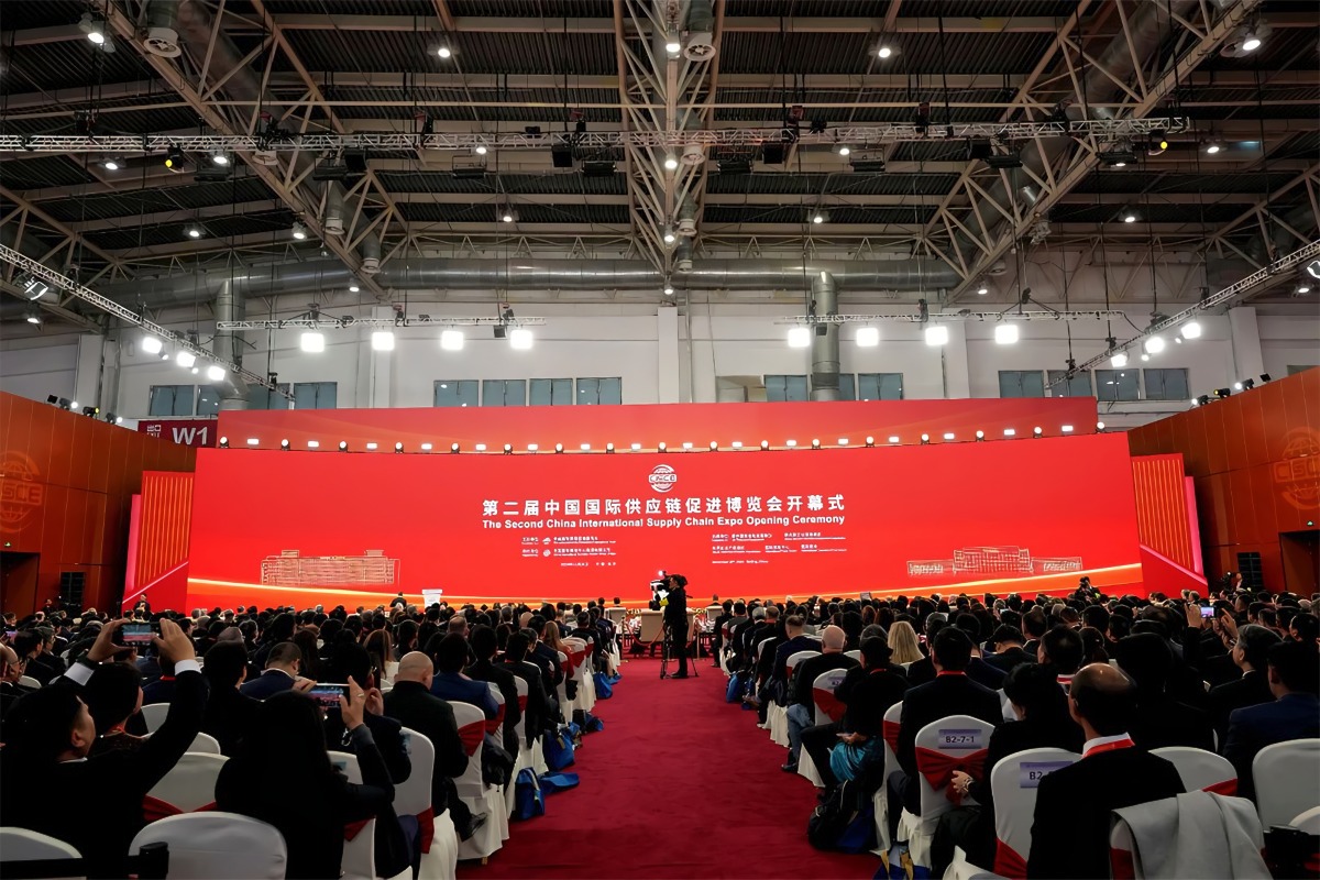 第二届中国国际供应链促进博览会是以“链接世界,共创未来”为展会主题,由中国贸促会主办,中展集团承办。联合国贸易和发展会议、联合国工业发展组织、世界知识产权组织、国际贸易中心、国际商会等5家国际组织担任支持单位,匈牙利、湖北分别担任主宾国和主宾省。是全球首个以供应链为主题的国家级展会。展览面积达12万平方米。全球共有620多家企业、机构和国际组织参展,其中境外参展商占比达32%。来自100多个国家和地区的政府、企业及学术界代表共聚一堂,深度探讨全球供应链产业合作的时代趋势和新型路径。