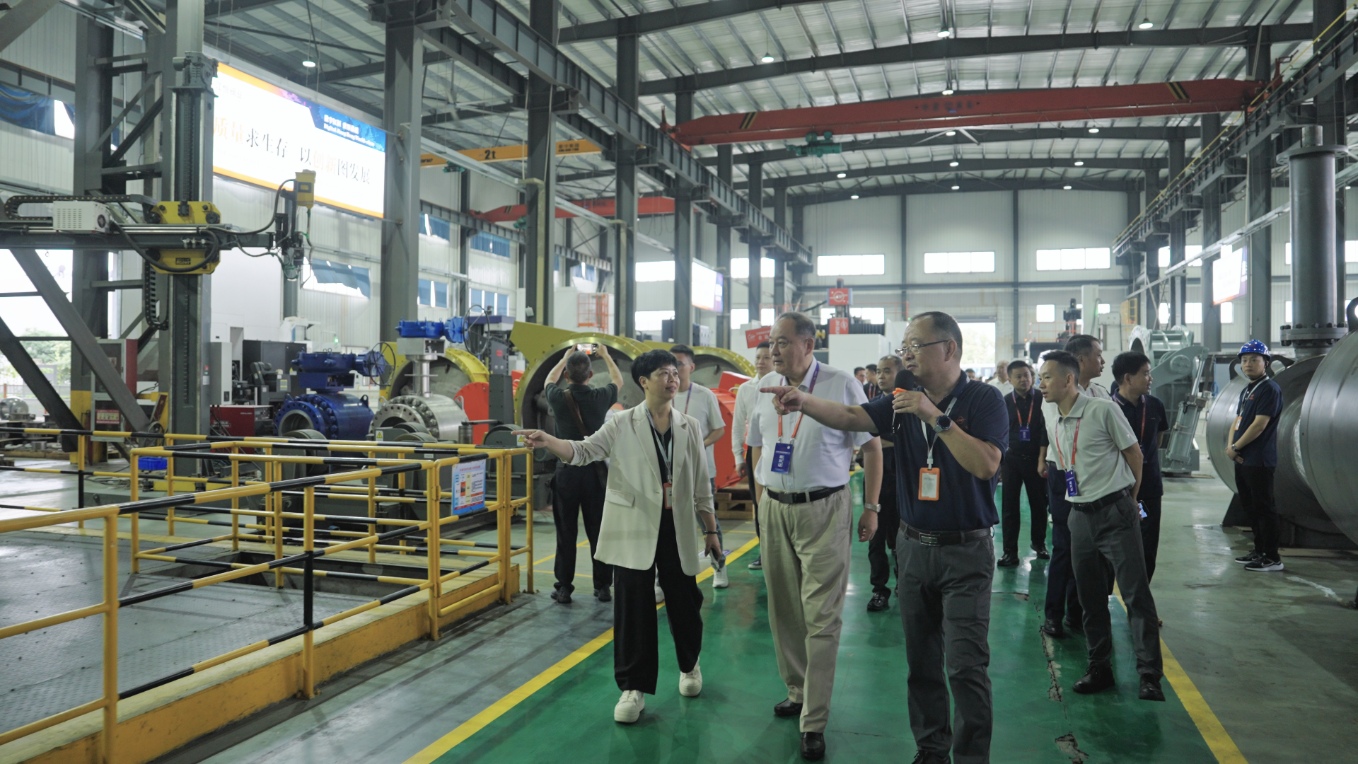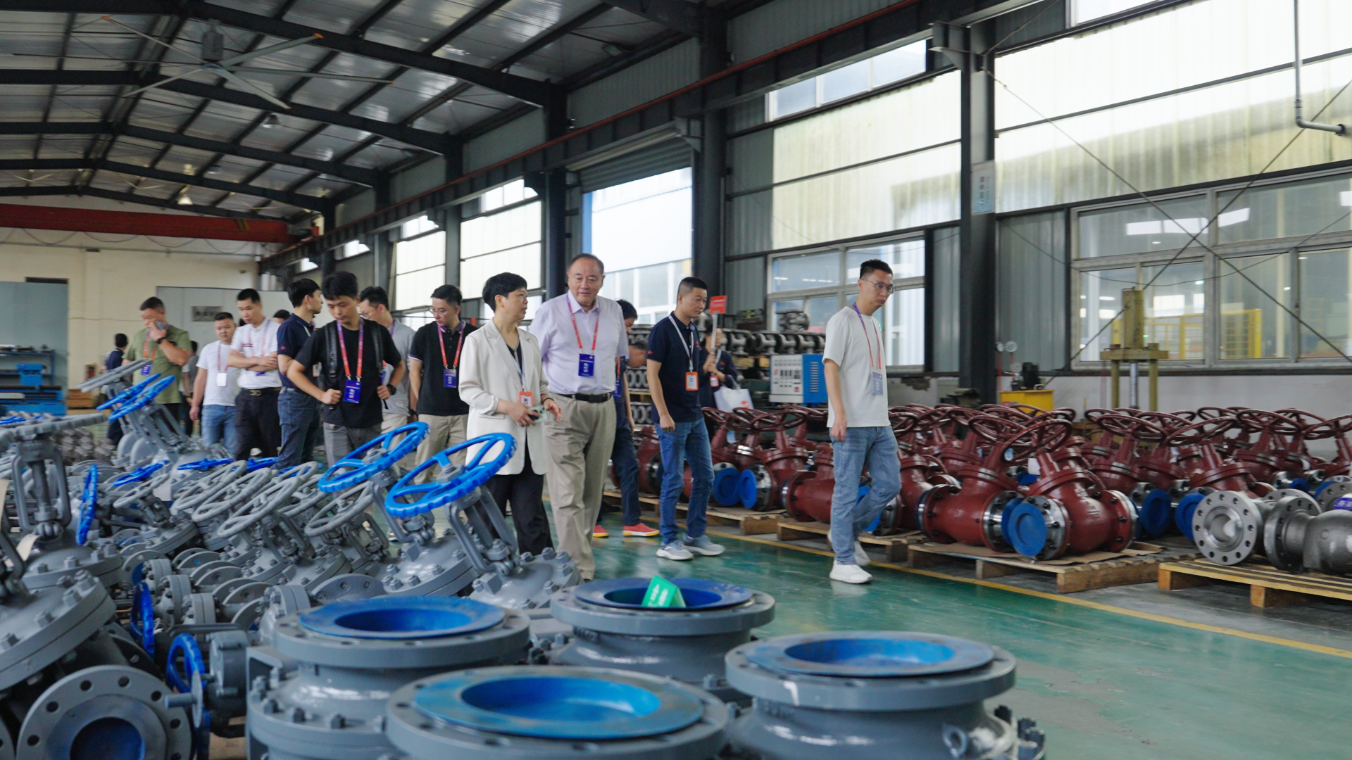 会议召开前,与会人员先后走访江恒阀业一厂、二厂及三厂,实地考察企业生产运行状况。参观过程中,各方对公司在智能制造体系建设、装备水平提升及质量管控优化等方面取得的成果给予高度关注。整洁有序的厂区环境、现代化的生产线与完善的检测体系,集中展现了江恒阀业在制造体系、管理规范化及精益生产能力上的持续提升。