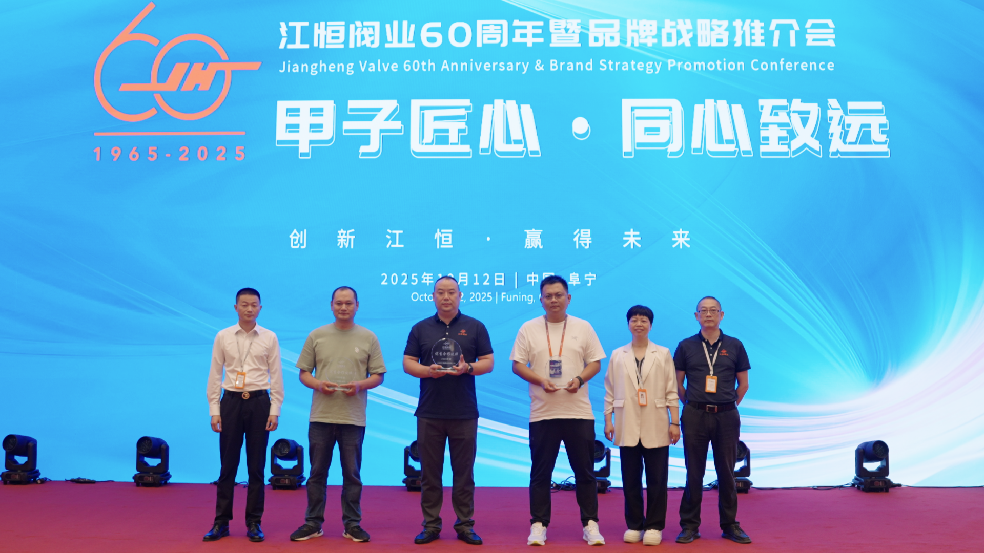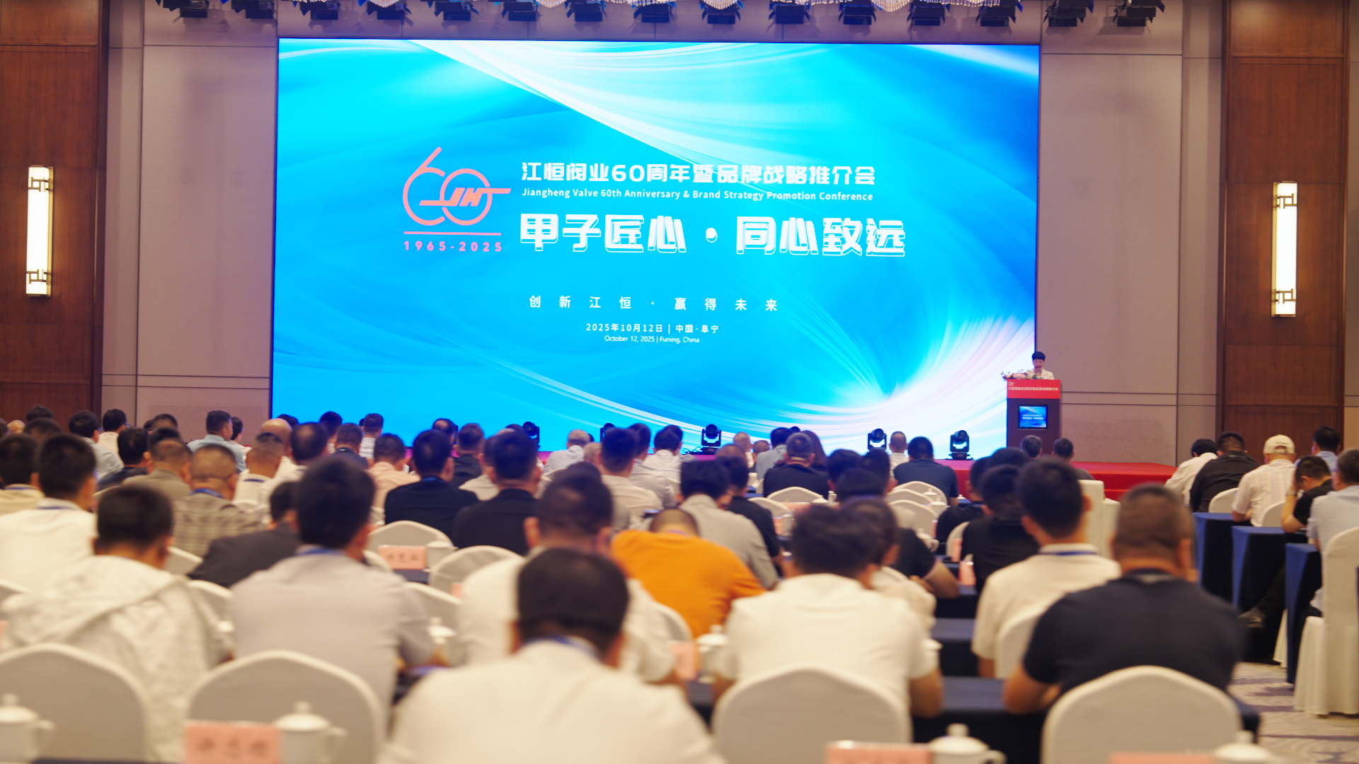 2025年10月11日至12日,江苏江恒阀业有限公司六十周年暨品牌战略推介会在阜宁盛启新程。大会以“甲子匠心 同心致远”为主题,于传承与创新的交汇点回望六十载砥砺征程,系统阐述企业未来的发展布局,集中展现公司在技术创新、产业升级与品牌建设等领域的最新成果与长远愿景,充分彰显江恒阀业立足新程、笃行致远的信心与担当。
